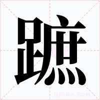 “蹠” 字共有 18 画,拼音:zhí,注音:ㄓˊ,部首:足,笔画数:18 画,字体结构:左右结构,五行:金,五笔:KHYO,Unicode编码:U+8E60,郑码:JIEU,仓颉:RMITF,“蹠”字笔顺为:丨フ一丨一丨一丶一ノ一丨丨一丶丶丶丶