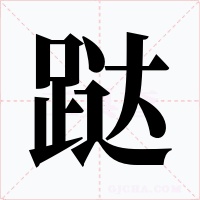 “跶” 字共有 13 画,拼音:dá,注音:ㄉㄚˊ,部首:足,笔画数:13 画,字体结构:左右结构,五行:火,五笔:KHDP,Unicode编码:U+8DF6,郑码:JIGW,仓颉:RMYK,“跶”字笔顺为:丨フ一丨一丨一一ノ丶丶フ丶