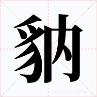 “豽” 字共有 11 画,拼音:nà,注音:ㄋㄚˋ,部首:豸,笔画数:11 画,字体结构:左右结构,五行:火,五笔:EEMW,Unicode编码:U+8C7D,郑码:PQLO,仓颉:BHOB,“豽”字笔顺为:ノ丶丶ノフノノ丨フノ丶
