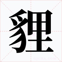 “貍” 字共有 14 画,拼音:lí,注音:ㄌㄧˊ,部首:豸,笔画数:14 画,字体结构:左右结构,五行:水,五笔:EEJF,Unicode编码:U+8C8D,郑码:PQKB,仓颉:BHWG,“貍”字笔顺为:ノ丶丶ノフノノ丨フ一一丨一一