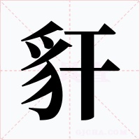 “豻” 字共有 10 画,拼音:àn,注音:ㄢˋ,部首:豸,笔画数:10 画,字体结构:左右结构,五行:土,五笔:EEFH,Unicode编码:U+8C7B,郑码:PQAE,仓颉:BHMJ,“豻”字笔顺为:ノ丶丶ノフノノ一一丨