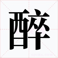 (会意。从酉(yǒu),从卒。“酉”表示酒,“卒”表示终结。酒喝到不能再喝的时候,就醉了。本义:醉酒)