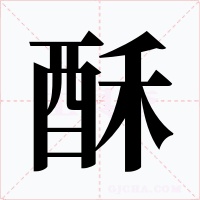 (会意。从禾,从酉(yǒu)。酥指食品,因而与禾、酉(代表酒)有关。本义:酪类。由牛羊乳制成。又称“酥油”)