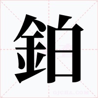 “鉑” 字共有 13 画,拼音:bó,注音:ㄅㄛˊ,部首:釒,笔画数:13 画,字体结构:左右结构,五行:金,五笔:QRG,Unicode编码:U+9251,郑码:PNK,仓颉:CHA,“鉑”字笔顺为:ノ丶一一丨丶ノ一ノ丨フ一一