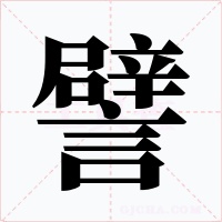 “譬” 字共有 20 画,拼音:pì,注音:ㄆㄧˋ,部首:言,笔画数:20 画,字体结构:上下结构,五行:水,五笔:NKUY,Unicode编码:U+8B6C,郑码:XMSS,仓颉:SJYMR,“譬”字笔顺为:フ一ノ丨フ一丶一丶ノ一一丨丶一一一丨フ一