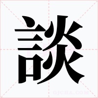 “談” 字共有 15 画,拼音:tán,注音:ㄊㄢˊ,部首:言,笔画数:15 画,字体结构:左右结构,五行:火,五笔:YOOY,Unicode编码:U+8AC7,郑码:SUUO,仓颉:YRFF,“談”字笔顺为:丶一一一丨フ一丶ノノ丶丶ノノ丶