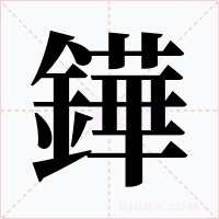 “鏵” 字共有 18 画,拼音:huá,注音:ㄏㄨㄚˊ,部首:釒,笔画数:18 画,字体结构:左右结构,五行:金,五笔:QAGF,Unicode编码:U+93F5,郑码:PEEB,仓颉:CTMJ,“鏵”字笔顺为:ノ丶一一丨丶ノ一一丨丨一一丨丨一一丨