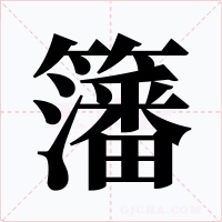 “籓” 字共有 21 画,拼音:fān,注音:ㄈㄢ|ㄆㄢ|ㄅㄧㄢ,部首:竹,笔画数:21 画,字体结构:上下结构,五行:木,五笔:TITL,Unicode编码:U+7C53,郑码:MVPK,仓颉:HEHW,“籓”字笔顺为:ノ一丶ノ一丶丶丶一ノ丶ノ一丨ノ丶丨フ一丨一