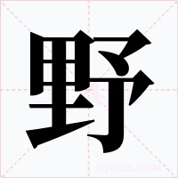 又如:野盘(可容身的山野之地);野马(浮游的云气);野井(乡野间的井水);野次(原野);野老(居于田野的老人);野色(原野的景色);野战(军队在旷野作战);野霭(山野中的云气)