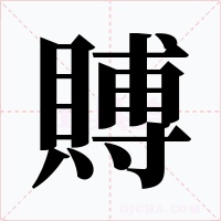 “賻” 字共有 17 画,拼音:fù,注音:ㄈㄨˋ,部首:貝,笔画数:17 画,字体结构:左右结构,五行:水,五笔:MGEF,Unicode编码:U+8CFB,郑码:LOFD,仓颉:BCIBI,“賻”字笔顺为:丨フ一一一ノ丶一丨フ一一丨丶一丨丶