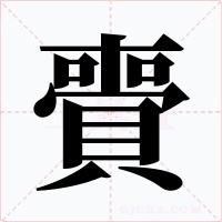 “賷” 字共有 17 画,拼音:jī,注音:ㄐㄧ,部首:貝,笔画数:17 画,字体结构:上中下结构,五行:火,五笔:FKKM,Unicode编码:U+8CF7,郑码:EDWL,仓颉:JBBUC,“賷”字笔顺为:一丨丨フ一丨フ一丶フ丨フ一一一ノ丶