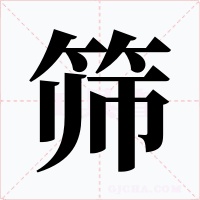 “筛” 字共有 12 画,拼音:shāi,注音:ㄕㄞ,部首:竹,笔画数:12 画,字体结构:上下结构,五行:木,五笔:TJGH,Unicode编码:U+7B5B,郑码:MKAL,仓颉:HLLB,“筛”字笔顺为:ノ一丶ノ一丶丨ノ一丨フ丨