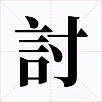“討” 字共有 10 画,拼音:tǎo,注音:ㄊㄠˇ,部首:言,笔画数:10 画,字体结构:左右结构,五行:火,五笔:YFY,Unicode编码:U+8A0E,郑码:SDS,仓颉:YRDI,“討”字笔顺为:丶一一一丨フ一一丨丶
