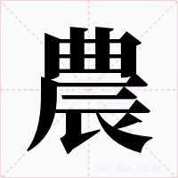 “農” 字共有 13 画,拼音:nóng,注音:ㄋㄨㄥˊ,部首:辰,笔画数:13 画,字体结构:上下结构,五行:火,五笔:MADE,Unicode编码:U+8FB2,郑码:KKGH,仓颉:TWMMV,“農”字笔顺为:丨フ一丨丨一一ノ一一フノ丶