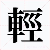 “輕” 字共有 14 画,拼音:qīng,注音:ㄑㄧㄥ,部首:車,笔画数:14 画,字体结构:左右结构,五行:火,五笔:LGVA,Unicode编码:U+8F15,郑码:FKHB,仓颉:JJMVM,“輕”字笔顺为:一丨フ一一一丨一フフフ一丨一