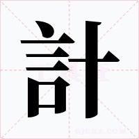 “計” 字共有 9 画,拼音:jì,注音:ㄐㄧˋ,部首:言,笔画数:9 画,字体结构:左右结构,五行:火,五笔:YFH,Unicode编码:U+8A08,郑码:SED,仓颉:YRJ,“計”字笔顺为:丶一一一丨フ一一丨