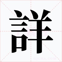 “詳” 字共有 13 画,拼音:xiáng,注音:ㄒㄧㄤˊ,部首:言,笔画数:13 画,字体结构:左右结构,五行:金,五笔:YUDH,Unicode编码:U+8A73,郑码:SUC,仓颉:YRTQ,“詳”字笔顺为:丶一一一丨フ一丶ノ一一一丨
