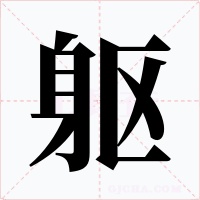 又如:躯老(躯劳。身体,身段);血肉之躯;躯量(身材);躯躬(身体。引申指生命);躯材(身材);躯身(身躯)