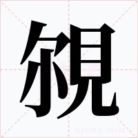 “覙” 字共有 12 画,拼音:zhěn,注音:ㄓㄣˇ,部首:見,笔画数:12 画,字体结构:左右结构,五行:金,五笔:QIHQ,Unicode编码:U+8999,郑码:RKLR,仓颉:NFBUU,“覙”字笔顺为:ノフ丨ノ丶丨フ一一一ノフ