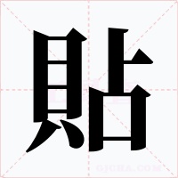 “貼” 字共有 12 画,拼音:tiē,注音:ㄊㄧㄝ,部首:貝,笔画数:12 画,字体结构:左右结构,五行:火,五笔:MHKG,Unicode编码:U+8CBC,郑码:LOIJ,仓颉:BCYR,“貼”字笔顺为:丨フ一一一ノ丶丨一丨フ一