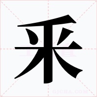 “釆” 字共有 7 画,拼音:biàn,注音:ㄅㄧㄢˋ,部首:采,笔画数:7 画,字体结构:上下结构,五行:水,五笔:TOI,Unicode编码:U+91C6,郑码:PFAA,仓颉:HFD,“釆”字笔顺为:ノ丶ノ一丨ノ丶