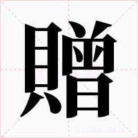 “贈” 字共有 19 画,拼音:zèng,注音:ㄗㄥˋ,部首:貝,笔画数:19 画,字体结构:左右结构,五行:火,五笔:MULJ,Unicode编码:U+8D08,郑码:LOLK,仓颉:BCCWA,“贈”字笔顺为:丨フ一一一ノ丶丶ノ丨フ丨丶ノ一丨フ一一