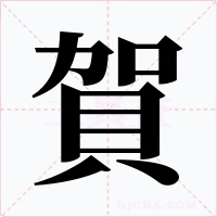 “賀” 字共有 12 画,拼音:hè,注音:ㄏㄜˋ,部首:貝,笔画数:12 画,字体结构:上下结构,五行:木,五笔:LKMU,Unicode编码:U+8CC0,郑码:YMJL,仓颉:KRBUC,“賀”字笔顺为:フノ丨フ一丨フ一一一ノ丶
