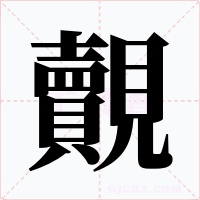 “覿” 字共有 22 画,拼音:dí,注音:ㄉㄧˊ,部首:見,笔画数:22 画,字体结构:左右结构,五行:火,五笔:FLMQ,Unicode编码:U+89BF,郑码:BLLL,仓颉:GCBUU,“覿”字笔顺为:一丨一丨フ丨丨一丨フ一一一ノ丶丨フ一一一ノフ