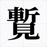 “覱” 字共有 18 画,拼音:zhàn,zhān,注音:ㄓㄢˋ,ㄓㄢ,部首:見,笔画数:18 画,字体结构:上下结构,五行:金,五笔:LRHQ,Unicode编码:U+89B1,郑码:FKPL,仓颉:JLBUU,“覱”字笔顺为:一丨フ一一一丨ノノ一丨丨フ一一一ノフ