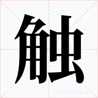 碰,撞:触礁。触电。触动。触摸。触发。触犯。触怒。