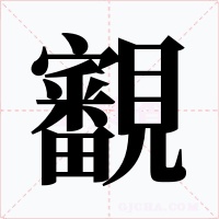 “覾” 字共有 22 画,拼音:shěn,注音:ㄕㄣˇ,部首:見,笔画数:22 画,字体结构:左右结构,五行:金,五笔:PTOQ,Unicode编码:U+89BE,郑码:WDKL,仓颉:JWBUU,“覾”字笔顺为:丶丶フノ丶ノ一丨ノ丶丨フ一丨一丨フ一一一ノフ