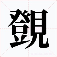 “覴” 字共有 19 画,拼音:dèng,注音:ㄉㄥˋ,部首:見,笔画数:19 画,字体结构:左右结构,五行:火,五笔:WGKQ,Unicode编码:U+89B4,郑码:XSUL,仓颉:NTBUU,“覴”字笔顺为:フ丶ノノ丶一丨フ一丶ノ一丨フ一一一ノフ