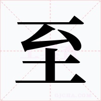 又如:至旦(到天明);水流至足;至竟(到底;毕竟);至止(到达,到来。止,语气词);无微不至;自春至冬;由东至西;至于(到;达到);至乎(至于。到;达到);至至(达到,道的最高境地);至到(指程度达到极点;到)