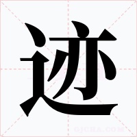 又如:浪迹天涯;人迹(人的足迹);人迹罕至;迹蹈(重复走过的路);迹状(行迹);迹响(踪迹和声响)
