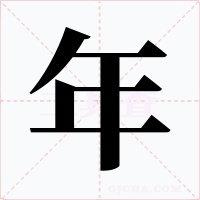 又如:过年;新年;拜年;年酒(为祝贺新年邀请亲友吃的酒席);年敬(年礼。年敬送的礼物);年开(谓新年开始);年对(春联);年羹(过年时吃的羹汤);年团(过年吃的团子)