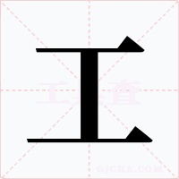 (象形。甲骨文字形,象工具形。“工”、“巨”(矩)古同字,有“规矩”,即持有工具。本义:工匠的曲尺)