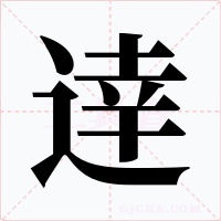 “逹” 字共有 11 画,拼音:dá,注音:ㄉㄚˊ,部首:辶,笔画数:11 画,字体结构:左下包围结构,五行:火,五笔:FUFP,Unicode编码:U+9039,郑码:BUW,仓颉:YGTJ,“逹”字笔顺为:一丨一丶ノ一一丨丶フ丶