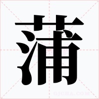 菖蒲〖calamus〗。如:蒲节(端午节);蒲人(以菖蒲扎成的人像);蒲酒(菖蒲酒);蒲练(用蒲之纤维织成的布);蒲艾(菖蒲与艾草)