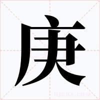 “庚” 字共有 8 画,拼音:gēng,注音:ㄍㄥ,部首:广,笔画数:8 画,字体结构:半包围结构,五行:金,五笔:YVWI,Unicode编码:U+5E9A,郑码:TGXO,仓颉:ILO,“庚”字笔顺为:丶一ノフ一一ノ丶