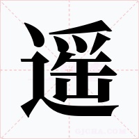 “遥” 字共有 13 画,拼音:yáo,注音:ㄧㄠˊ,部首:辶,笔画数:13 画,字体结构:半包围结构,五行:火,五笔:ERMP,Unicode编码:U+9065,郑码:PVZW,仓颉:YBOU,“遥”字笔顺为:ノ丶丶ノノ一一丨フ丨丶フ丶