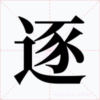 依次,按顺序〖onebyone;inorder〗。如:逐步;逐个;逐年;逐日;逐一(一个一个地,逐个);逐句(按句子次序,一句一句地);逐字(一字一字地)