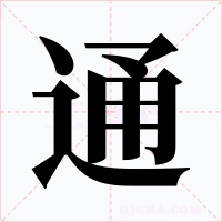 设有阻碍,可以穿过,能够达到:通风。通天。通气。通宵。通行。通过。通衢。贯通。四通八达。曲径通幽。