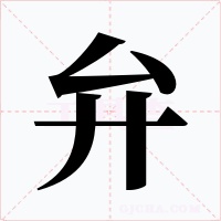 “弁” 字共有 5 画,拼音:biàn,注音:ㄅㄧㄢˋ,部首:廾,笔画数:5 画,字体结构:上下结构,五行:水,五笔:CAJ,Unicode编码:U+5F01,郑码:ZSE,仓颉:IT,“弁”字笔顺为:フ丶一ノ丨