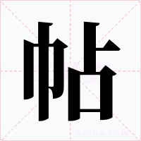 (形声。从巾,占声。本义:古代字写在布帛上叫帖)