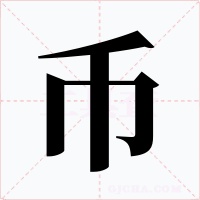 “币” 字共有 4 画,拼音:bì,注音:ㄅㄧˋ,部首:巾,笔画数:4 画,字体结构:上下结构,五行:水,五笔:TMHK,Unicode编码:U+5E01,郑码:MLI,仓颉:HLB,“币”字笔顺为:ノ丨フ丨