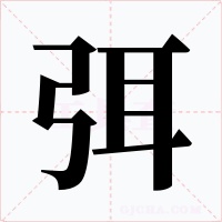 (形声。从弓,耳声。本义:角弓,末端用骨做装饰的弓)