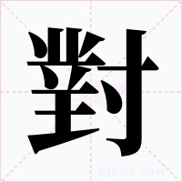 “對” 字共有 14 画,拼音:duì,注音:ㄉㄨㄟˋ,部首:寸,笔画数:14 画,字体结构:左右结构,五行:火,五笔:OGUF,Unicode编码:U+5C0D,郑码:KUUD,仓颉:TGDI,“對”字笔顺为:丨丨丶ノ一丶ノ一一丨一一丨丶
