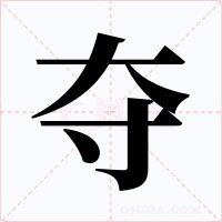 又如:夺转(夺得);夺劝(一边劝一边夺拿);夺情(皇帝特许某些有亲丧的官僚不守孝,或者未满守孝期者复取。意思是夺去了他的哀思之情);夺席(夺取他人的席位)