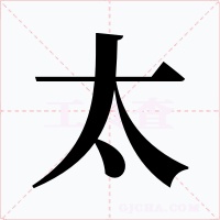 (指事。古作“大”,后语音分化,在“大”字下添加符号,成指事字。本义:过于)