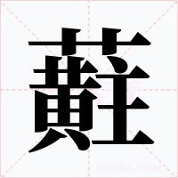 “蘣” 字共有 19 画,拼音:tǒu,注音:ㄊㄡˇ,部首:艹,笔画数:19 画,字体结构:上下结构,五行:木,五笔:AAMG,Unicode编码:U+8623,郑码:EESC,仓颉:TTCG,“蘣”字笔顺为:一丨丨一丨丨一丨フ一丨一ノ丶丶一一丨一